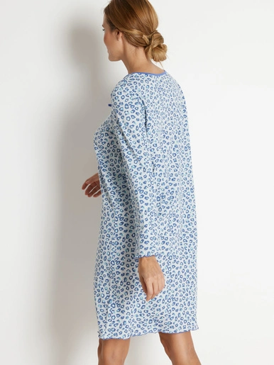 On est bleues de l’imprimé « peau de bête », sauvagement tendance, décliné sur cette chemise de nuit en coton extra doux…