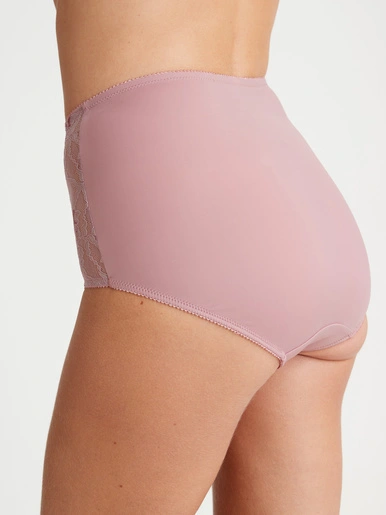 Une culotte effet ventre plat : notre petit secret pour une silhouette affinée et un confort idéal. La dentelle bicolore de cette culotte maxi lui donne un charme fou.