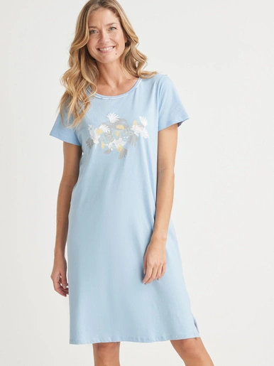 Tout en douceur et en légèreté, ces jolies chemises de nuit manches courtes… En en plus, elles vendues en lot de 2, un double plaisir ! 1 unie + 1 imprimée « feuilles ».