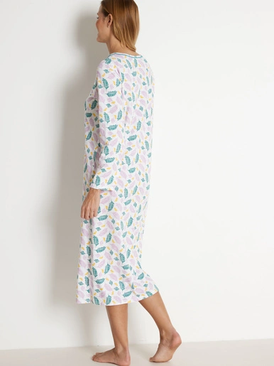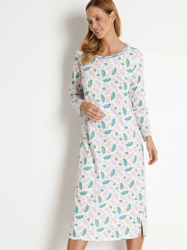 Tout en douceur et en légèreté, ces jolies chemises de nuit manches longues… En en plus, elles vendues en lot de 2, un double plaisir ! 1 unie + 1 imprimée « plumes ».