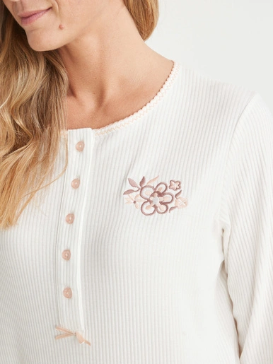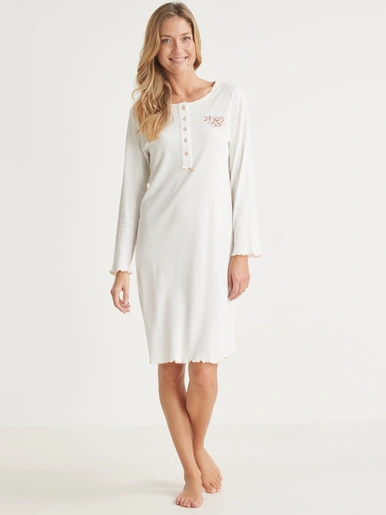 La maille interlock a toujours nos faveurs… Cette saison, en plus, elle est en coton ultra douce ! Une raison supplémentaire de craquer pour cette chemise de nuit courte, manches longues.