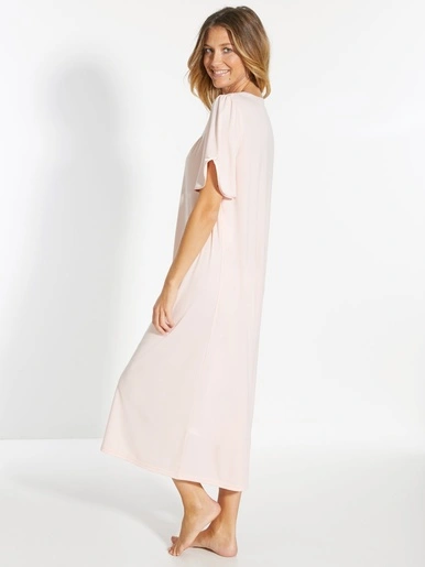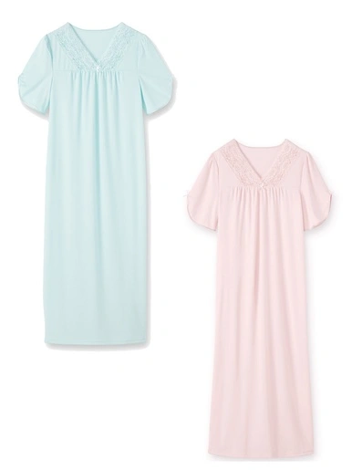 Délicatesse et fantaisie se rencontrent sur ce lot de 2 chemises de nuit manches courtes avec leur jeu de dentelle qui font tout leur charme !
