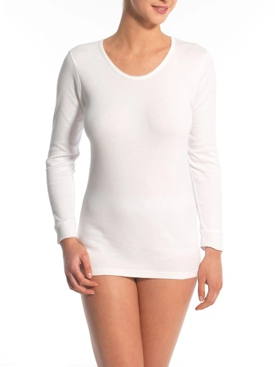 Chemise manches longues avec bord-côtes finition picot à l’encolure et au bas des manches longues pour un confort maximum. Base ourlée.