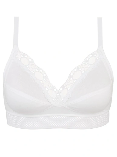 Soutien-gorge en coton bio très doux et agréable. Ravissante dentelle florale sur le haut des bonnets emboîtants 2 parties. Les bretelles réglables peuvent se croiser dans le dos. Large bande élastique sous la poitrine pour le confort et le maintien. Triple agrafage dos 3 positions.