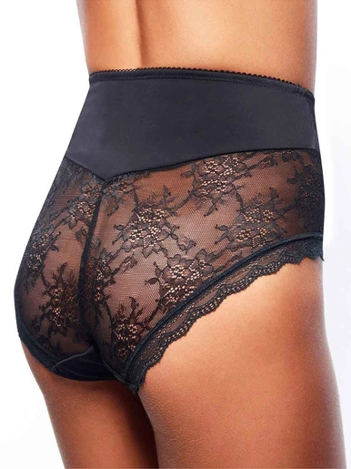 Affinez votre silhouette, sans renoncer à la séduction. Belle microfibre noire, combinée à une dentelle florale chic et sensuelle. Panneau avant doublé de tulle rigide, pour un bel effet ventre plat. 84% polyamide, 16% élasthanne – doublure 100% coton.