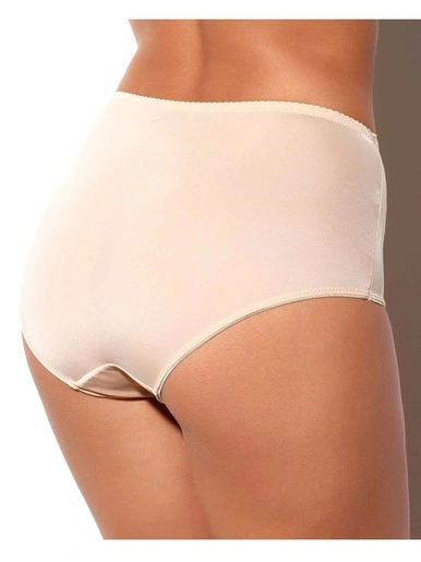 Cette culotte haute est composée de trois couches sur le devant avec la microfibre, le coton et le tulle gainant à l’intérieur pour l’effet ventre plat, deux élastiques soyeux à l’ouverture des cuisses et sur le devant, doublure fond de slip 100 % coton.
