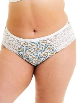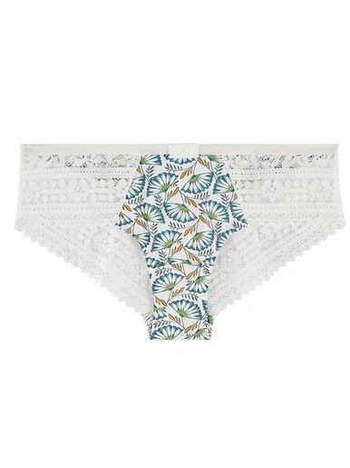 Shorty en microfibre imprimée au motif fleurs nénuphar. Dentelle florale, graphisme en bande.