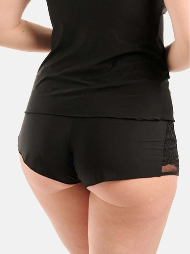 Short SANS COMPLEXE très féminin et confortable associant une douce microfibre, des empiècements de tulle et une élégante dentelle.