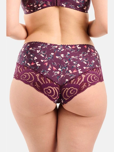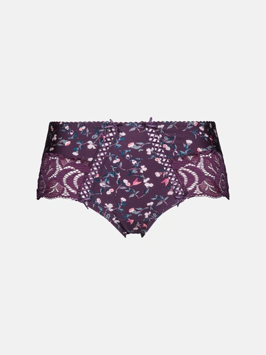 Shorty SANS COMPLEXE offrant une couvrance élevée grâce à ses formes rassurantes. mix matières entre une dentelle textronic visuelle et une microfibre imprimée fantaisie très confortable.