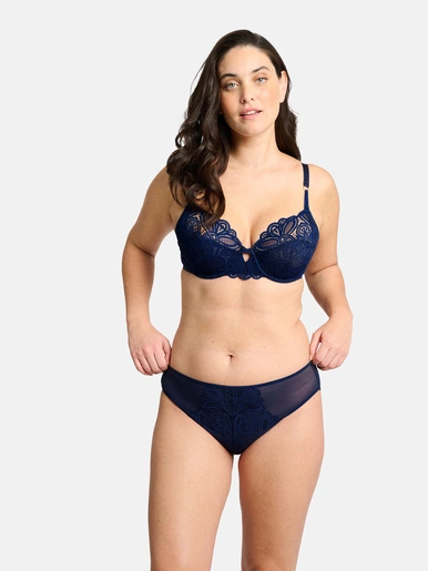Elégant et sophistiqué, le slip Attirance à couvrance moyenne sublime vos formes. Il se compose d’une belle dentelle à écailles chic et sexy. Cette dentelle est associée à du tulle transparent ce qui rend la pièce encore plus séduisante. Une découpe en V ainsi que des jeux de laçages et un petit anneau viennent décorer l’arrière. Les élastiques sont ultra plats pour plus de discrétion au porté.