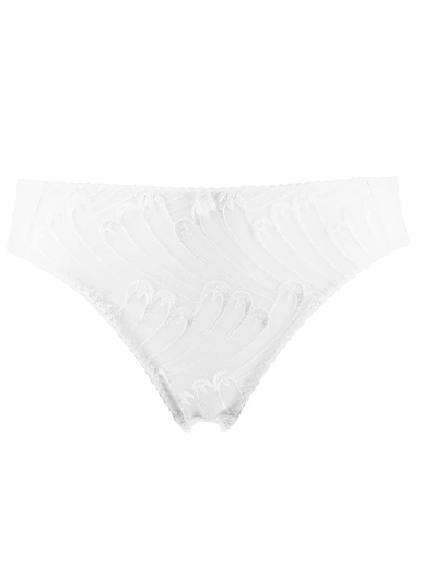 Slip à taille élastiquée. Devant en tulle brodé. Dos en microfibre.