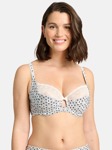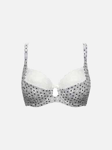 Ce soutien-gorge armatures allie une microfibre imprimée graphique à une dentelle ajourée pour un look chic et moderne. Le maintien est assuré grâce à la construction des bonnets doublés d’un tulle bloqué ainsi que les baleines sur les côtés. La dentelle sur les hauts bonnets ainsi que que le jeu de découpe à l’entre-seins apportent une touche de féminité. Dos en U et en microfibre.