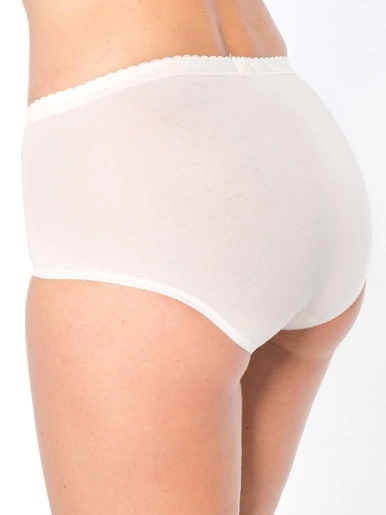 Lot de culottes à la coupe maxi bien haute, élastique plat brodé à la taille. Picot élastique aux jambes. Fond doublé coton.