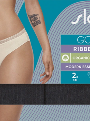 Le confort extrême avec GO RIBBED de sloggi : une nouvelle collection de sous-vêtements indispensables au quotidien, en coton biologique côtelé très doux et dentelle délicate.