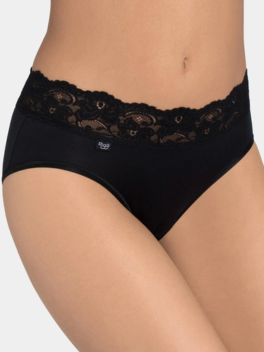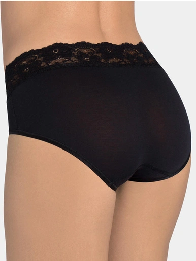 Slip midi en microfibre et coton naturel, idéal au quotidien pour un porter tout en douceur et légèreté. Inserts de dentelle Jacquardtronic à motifs floraux, élastiques doux et épurés. Le fil de Lycra est plus fin et contient plus de filaments: augmentation de la douceur et de l’élasticité, meilleur maintien et ajustement à la silhouette. Il est résistant et garde sa forme au fil des lavages, grâce à la facilité d’entretien de la microfibre.