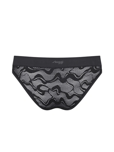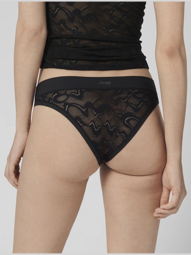 Slip de style mini. Jambe haute avec côtés étroits. Tissu super doux et extensible avec une sensation naturelle et des coutures flexibles. Large ceinture ton sur ton pour le confort. Dentelle et design modernes Lasercut. Mélangez et assortissez avec la série originale GO Allround. Logo Sloggi imprimé au centre du dos. Taille unique.
